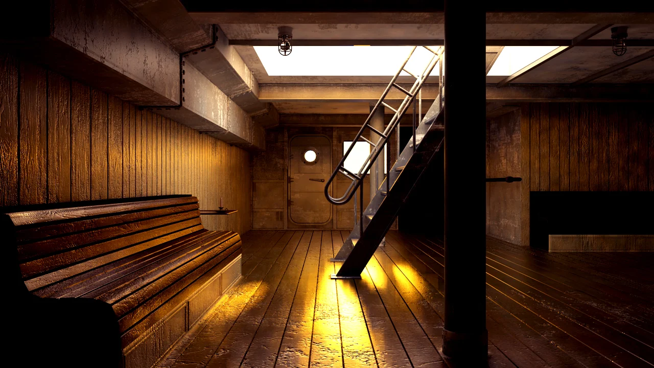 Underwater searchlight, rendered in Mental Ray. HDR Post in Photoshop.